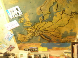 Als man begann, die Staaten zu verehren, fing das Blutvergießen an. Deutschland, Frankreich, Spanien — alles falsch. Ich fragte dummerweise zwei Mitarbeiter des Baumarkts in Müllheim: Seid ihr aus Frankreich? Nein, kam empört zurück, wir sind Elsässer. Der Besitzer der Pizzeria, der von Giovanna gefragt worden war, ob er Italiener sei, gab zur Antwort: Ich bin Sizilianer. Würde man mich fragen, würde ich mich wohl auch als Bayer oder Münchner bezeichnen und in zweiter Linie erst als Deutscher. Die Katalanen sehen sich als Katalanen, die Andalusier als Andalusier und nicht als Spanier, und wir haben Badener und Pfälzer und Mecklenburger. (Rechts: Armando Basiles Europa.)