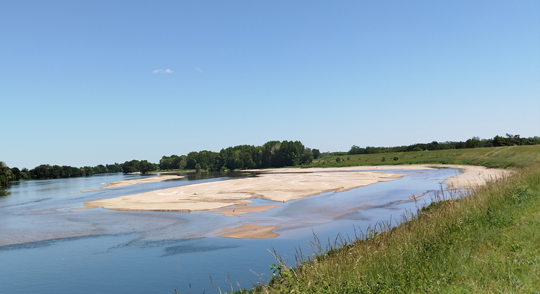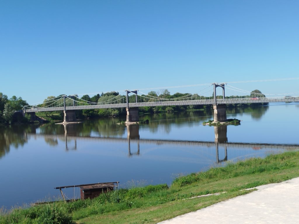 Von Sully fährt man an der Loire entlang, oft auf dem Deich. Da gibt es schöne verträumte Orte, stolze Brücken und den Fluß mit seinen Sandbänken.