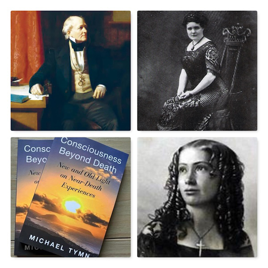 Cora L. V. Richmond (unten rechts, 1840-1923) erwähnt eine Nahtod-Erfahrung in ihrem Buch My Experiences While Out of My Body (1923). Sie habe eine Art Super-Bewusstsein besessen und schier alles gewusst. Geliebte Verstorbene begrüßten sie; als erstes jene, die ihr am nächsten gewesen waren. Fanny Ruthen Paget im Bild oben rechts) schilderte dieses Willkommen auch, in ihrem Buch How I Know that the Dead are Alive (1917). Das heißt: Woher ich weiß, dass die Toten leben. Sie lernte auch ihren Geistführer kennen, der sich als Meon zu erkennen gab und ihr eine kleine Tour durch die Geistige Welt ermöglichte. Fanny erlebte dabei auch die Zone der »roten Dunkelheit« mit, in der Seelen verkehrten, die sich der Erde noch verbunden fühlten. »Irdische Interessen halten sie hier fest«, erklärte Meon. Manchen gefalle das, während andere spirituell nicht stark genug seien, sich davon zu lösen. Diese Erfahrungen sind sehr ausführlich geschildert.