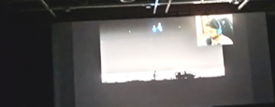 Oben sehen wir zwei hellblaue Punkte auf der Leinwand. Sie entschwinden nach oben, denn es sind die Seelen von Mutter und Kind, die im Gaza-Streifen ihr Leben verloren. Die Darstellung ist aus einem Videospiel von Rasheed Albueideh, das nächstes Jahr in den Handel kommen soll. Mohamed Mesbah zeigt das Leben des palästinensischen Videospiel-Creators mit seiner Familie. Der Kurzfilm heißt Still playing.