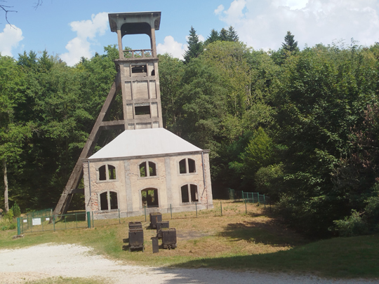 Bei der Weiterfahrt kam ich an Ronchamp vorbei, das diese berühmte Kapelle von Le Corbusier auf dem Berg stehen hat. Doch es ging steil hoch, und da ich nicht wusste, wieviele Kilometer zu laufen waren, ließ ich es sein. Stattdessen Ste. Marie des Puits: ein Marienheiligtum in einer früheren Zeche. Bergbau gab’s da wie auch bei uns im Südschwarzwald.