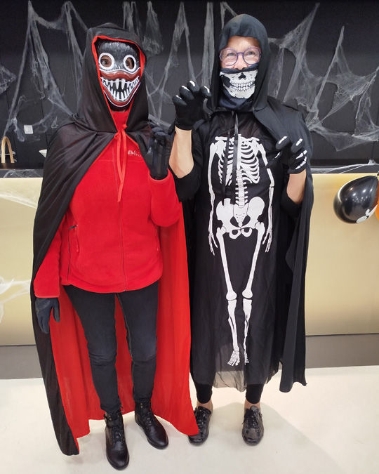 Besson (geboren 1959, etwas jünger als ich) hat sich an dem Dracula-Buch von Bram Stoker von 1897 orientiert, dem Klassiker. Der Film kommt am 30. Oktober in die deutschen und Deutschschweizer Kinos, darum darf man nicht viel verraten. Ihn zu sehen lohnt sich auf jeden Fall. Seit Ende Juli wird er in Frankreich gespielt, und ich sah ihn vorgestern in Fessenheim im Elsass, gleich hinter dem Rhein. (Links: So nett wurden die Kinobesucher begrüßt. Die beiden hielten Schilder mit »Bonsoir« in der Hand und verteilten gebrannte Mandeln. In einer Woche ist Halloween!)