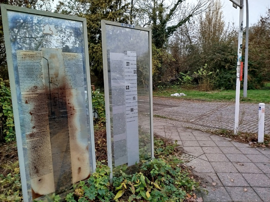 Dann folgt eine Art Autobahn, und weiter draußen findet man noch 2 Gedenktafeln, die auf die Menschen hinweisen, die an der Mauer starben.