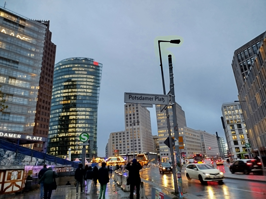 Zu Fuß geht man dann 10 Minuten zum Potsdamer Platz, den ich mit Fritz vor 30 Jahren noch unbebaut und verwildert erlebt habe – wie in dem Film mit den zwei Engeln von Wim Wenders, Himmel über Berlin, glaube ich.