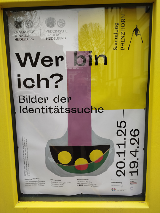 Bilder der Identitätssuche bietet die Sammlung Prinzhorn in Heidelberg mit Kunst von Psychiatrie-Patienten. Ich war nach 13 Jahren wieder dort; zuletzt war das im September 2012 mit meiner Mutter, in den ersten Tagen von manipogo. Die Sonderausstellung ist mit Wer bin ich? betitelt, und sie dauert noch bis 19. April. Sehenswert. Und das passt zum Beitrag von gestern.