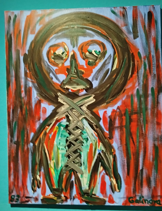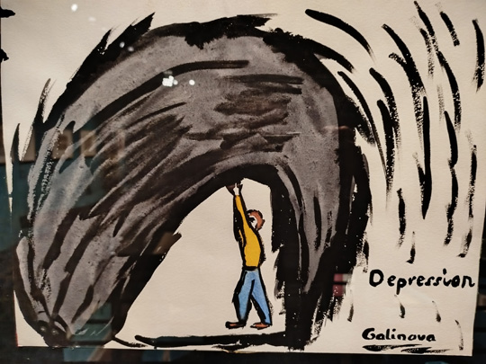 Alexandra Galinova lebte von 1936 bis 2021. Ihre Bilder treffen einen ins Mark. Da ist das Leid direkt auf die Leinwand geflossen. Nie habe ich eine treffendere Darstellung der Depression gesehen. Diese Bilder sollte in einem konevntionellen Museum hängen, sie sind ein Extrem des Selbstausdrucks, radikal und so bedrückend …