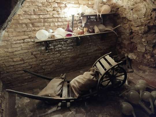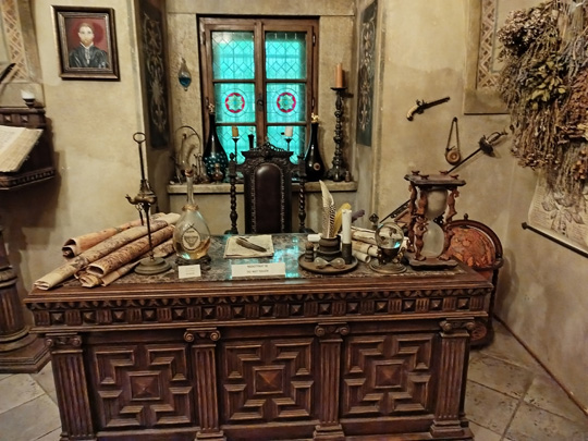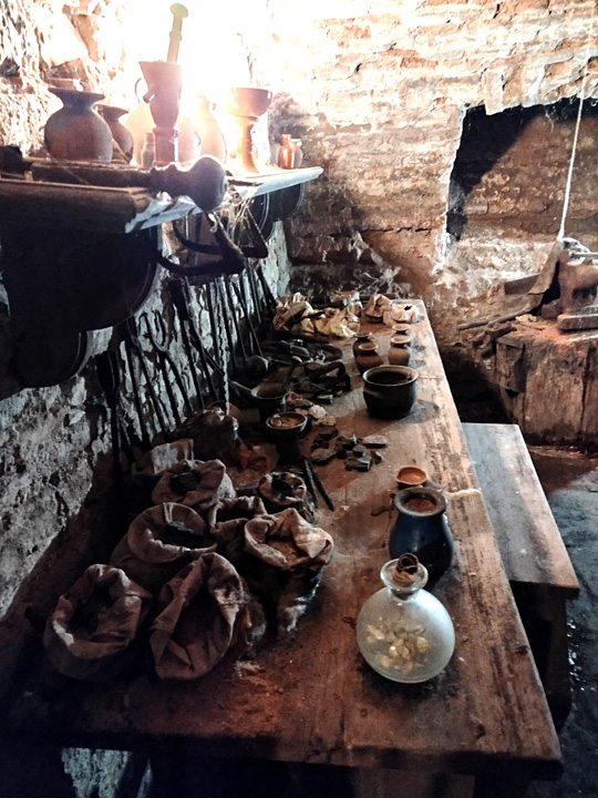 Ich war in Prag im Alchemie-Museum Speculum Alchemiae. Wir wurden unter die Erde geführt, und da durften wir in 5 Räume hineinblicken, die wirkten, als seien sie eben erst verlassen worden. Als sei der Alchemist für ein Gulasch mit Knödeln und ein Bier mal schnell für eine Stunde nach oben gegangen in die Gasse. Wir müssen uns dazu muffigen Geruch vorstellen und ein stetiges Tropfen von Wasser, denn die Räume lagen unter der Erde. – Oben konnte man für umgerechnet 300 Euro 1,5 Liter Jungbrunnentrank erwerben; nicht zuviel für eine erneuerte Jugend, aber wir sind ja so skeptisch geworden, wir wissen zu viel und glauben nicht an Wunder, an so offensichtliche jedenfalls nicht.