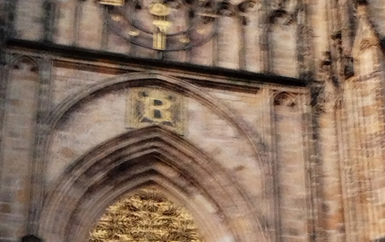 Etwas schwer zu erkennen: Aber Rudolf hat den Dom mit einem neuen Schiff versehen und sein „R“ angebracht