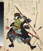 Miyamoto Musashi. Dies ist der Titel einer Illustration von Utagawa Kuniyoshi (1793-1861), vermutlich entstanden um 1850. Dank an die Library of Congress, Washington D. C. Links vermutlich Takuan