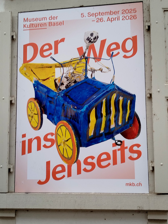 Wenn man vom Münsterplatz hochsteigt, kommt man zum Münster, und da haben wir das Haus der Kulturen – und eine interessante Ausstellung; neben der Geister-Ausstellung im Kunstmuseum sicherlich sehenswert. Ich muss nochmal hin und kann dann beide sehen. Die Geister gehen noch bis zum 8. März, der Jenseitsweg bis zum 26. April.