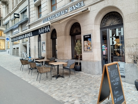 Unser Freund Kafka wird auch geehrt Das Literaturhaus ist durch das Café Kafka begehbar. Das Bild darunter zeigt uns den Veranstaltungssaal im Rückraum. Für Dichterlesungen. Dort erzählen uns am 11. März um 19 Uhr unter dem Titel Hebel Wirkungen Gianna Molinari, Ariane Koch und Andreas Lang, was uns Johann Peter Hebel heute noch zu sagen hat.