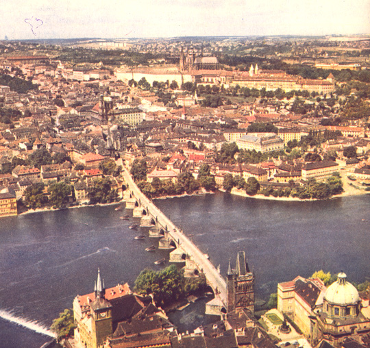Heute mal ein Flugverkehr mit viel Prosa. Ich hatte nach unserer Prag-Reise das Buch Prag: In 96 farbigen Luftaufnahmen gefunden, aus dem Jahr 1966. Aus diesem Band darf ich ein paar Bilder bringen, der Verlag hat es mir erlaubt. Aber das Vorwort ist zu gut, dem kommt die Hauptrolle zu.