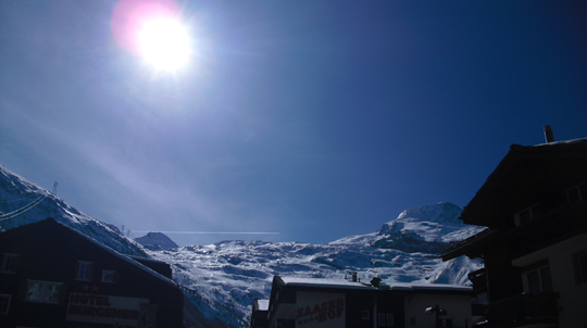By the false azure of the windowpane.