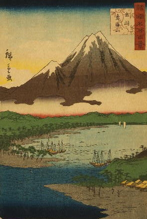 Der Fujiyama ist ein 3776 Meter hoher Vulkan und der höchste Berg Japans. Viele Poeten haben ihn besungen, etwa Jamabe Akahito (680-745):