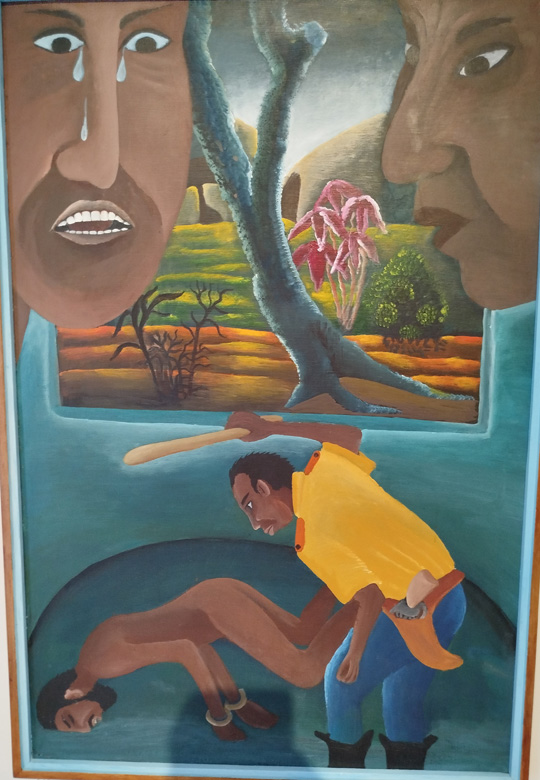 Der ägyptische Machthaber Al-Sisi verwirklicht irrsinnig teure Großprojekte, unterdrückt die freie Meinung ind lässt die Gefängnisse füllen. In Syrien wurden die Kurden eingegliedert, aber die IS-Kämpfer machen Sorge. Krieg im Sudan, aber aus Afrika hört man wenig. Der Gaza-Streifen ist zerbombt. In Osteuropa starb womöglich bereits eine Million Menschen –Soldaten und Zivilisten – in dem sinnlosen Krieg um die Ukraine, den Putin wollte. Die multilaterale Weltordnung ist in Gefahr, nur weil zwei Herrscher vom Weltreich träumen wie andere von der totalen Herrschaft in ihrem Land. Immer Männer! (Rechts klein das Bild Terror und Volkstrauer von Julien Valéry, Haiti, 1987. )