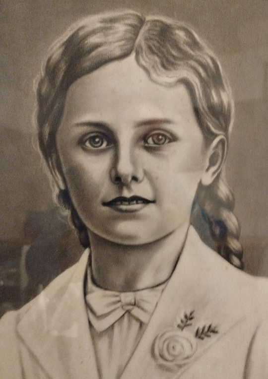Ich höre aber nichts von ihr. Außer den vier Malen, als ich meinen Namen im Halbschlaf hörte, den sie mir wohl zurief (»Mani!«), war da nicht viel. Vor 2 Monaten, nach meinem Geburtstag, habe ich mal wieder von ihr geträumt. Sie saß neben mir am Tisch, und ich habe sie spontan ganz fest umarmt, was mich selbst überraschte, denn ich bin sonst nicht so spontan. – Einen schönen kleinen Film aus Japan über Mutterliebe gibt es, Itadakimasu. Mit englischen Untertiteln. Den schau ich mir heute mal an, das wird mir nahegehen. (Rechts: So hat mein Großvater seine junge Tochter porträtiert.)