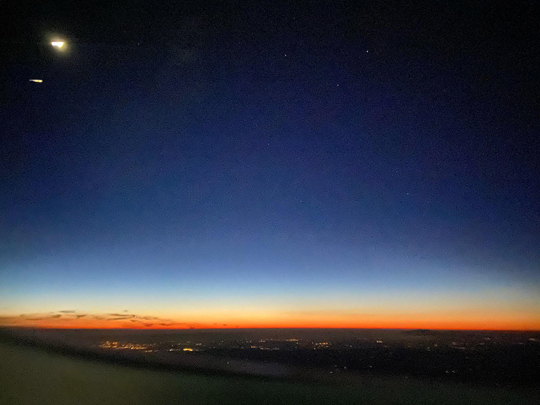 Eine zweite schöne Nachtflug-Stelle findet sich in Wind, Sand und Sterne (Terre des hommes) von Antoine de Saint-Exupéry. Das ist sein eigener Flug, bevor sie – sein Mechaniker und er – abstürzten in der Wüste. Zunächst waren sie unterwegs nach Benghasi. Da ich das Buch auf Deutsch nicht hier habe, muss ich den Text selber übersetzen. Gute Übung.